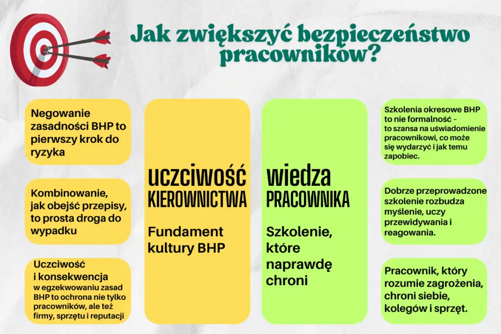 Zwiększenie bezpieczeństwa pracy to nie tylko obowiązek – to wybór, który podejmujemy każdego dnia. Uczciwe kierownictwo i świadomy pracownik to duet, który naprawdę działa. A szkolenia BHP? To nie koszt – to inwestycja w życie, zdrowie i stabilność firmy.
